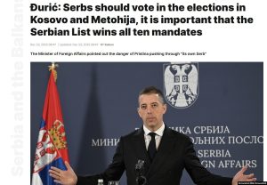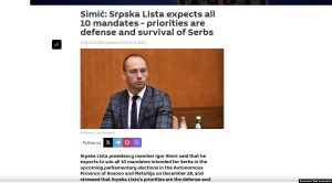 Në artikuj e shkrime të publikuara nga fillimi i dhjetorit, u jepet zë thirrjeve ndaj serbëve të Kosovës që si alternativë të vetme politike ta shohin Listën Serbe, partinë më të madhe të serbëve në vend, me lidhje të dëshmuara me Beogradin.