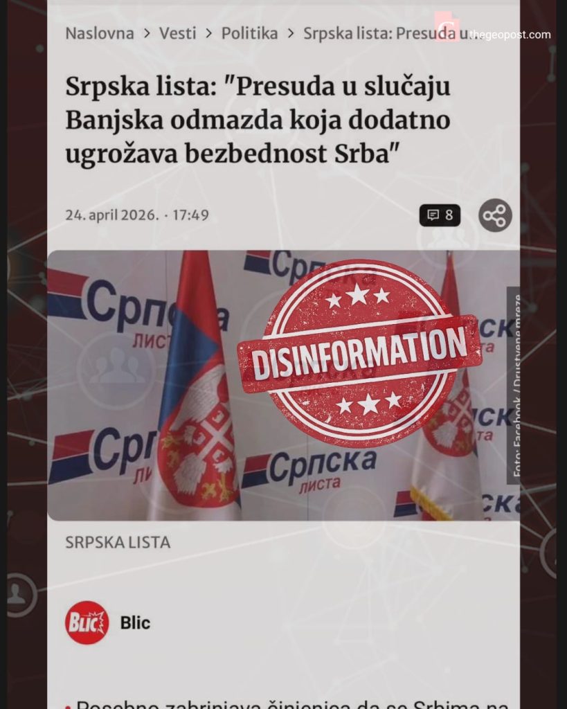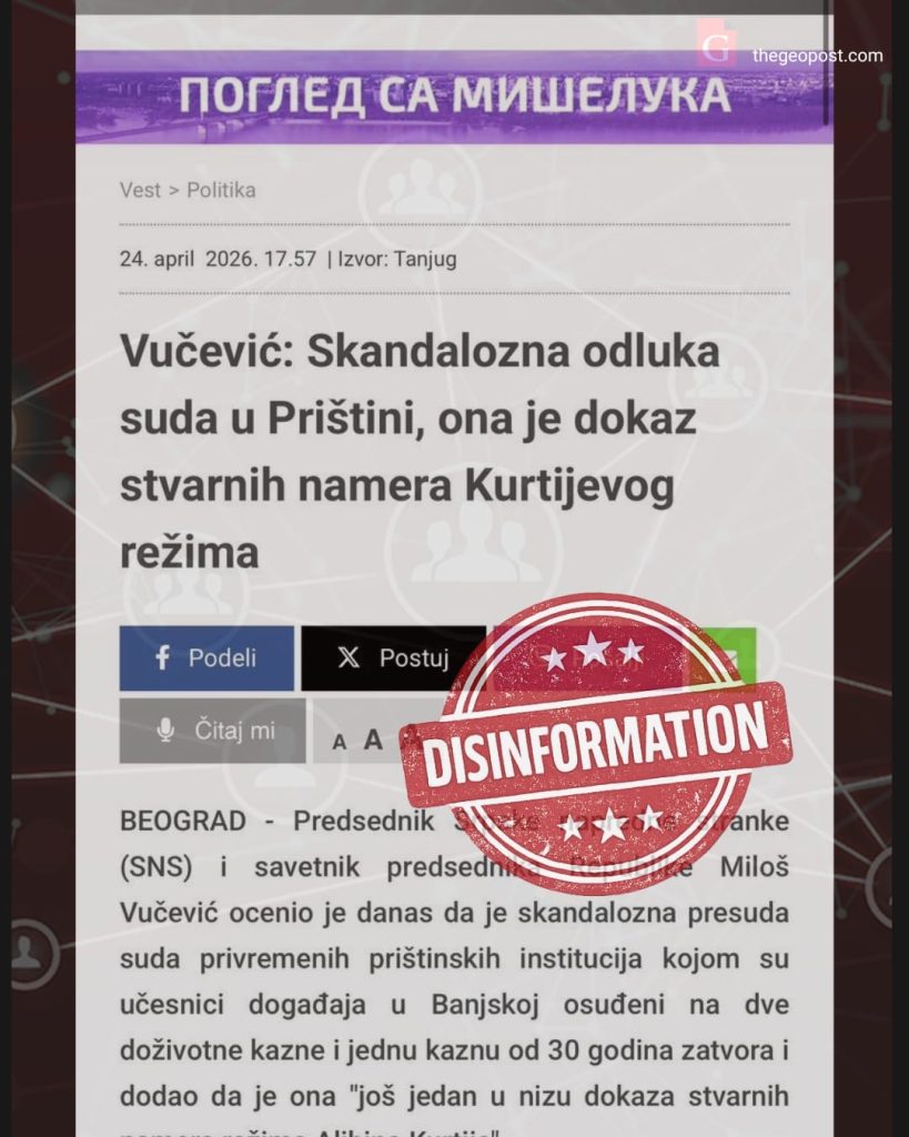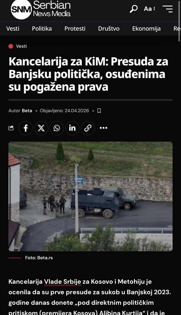 Përhapja e orkestruar e dezinformatave nga Beogradi lidhur me vendimin për sulmin terrorist në Banjskë — e ashtuquajtura Zyrë për Kosovën, Presidenti i Partisë Progresive Serbe (SNS), këshilltari i presidentit të Serbisë Milosh Vuçeviq dhe Lista Serbe po dalin me mesazhe të koordinuara, duke pretenduar se bëhet fjalë për një proces politik dhe “hakmarrje”.