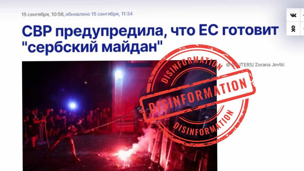 Ruska spoljna obaveštajna služba (SVR) širila je dezinformacije tvrdeći da Evropska unija stoji iza „nemira u Srbiji“ u koje su umešani mladi ljudi i da će godišnjica pada nadstrešnice 1. novembra biti iskorišćena za okončanje „srpskog Majdana“.